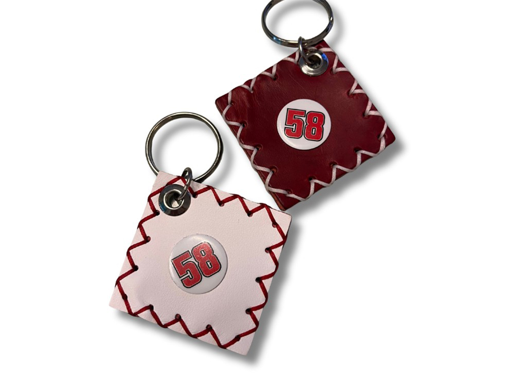 Portachiavi in cuoio, disponibile a forma di cuore oppure tondo, con un 58 in gomma applicato al centro. È realizzato a Casa Marco Simoncelli dai ragazzi con disabilità, come attività di laboratorio che unisce creatività, manualità e inclusione. Un oggetto utile, solidale e ricco di significato: perfetto per chi desidera sostenere con un gesto concreto i progetti della Fondazione e portare sempre con sé un simbolo del Sic .